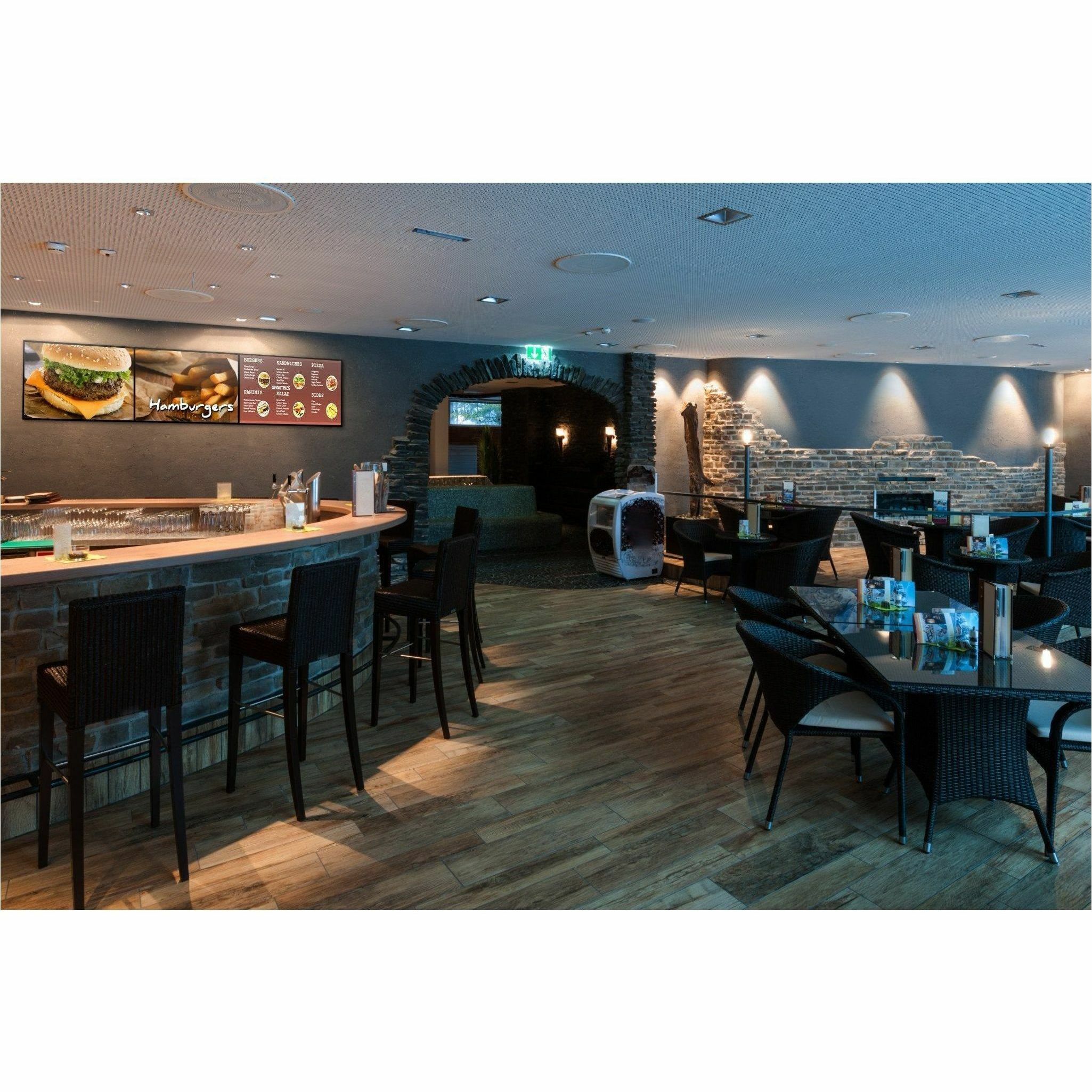 El soporte para menús de restaurantes de servicio rápido de Peerless-AV es una superficie de colocación optimizada mediante placas de pared interconectadas. Las opciones de inclinación fijas y continuas permiten que todas las pantallas se inclinen en el mismo ángulo creando en una alineación uniforme. El soporte para menús de restaurantes de servicio rápido permite ajustar sin herramientas la altura y la profundidad en las cuatro esquinas haciendo más fácil la instalación en paredes con imperfecciones. La parte inferior de la pantalla se mantiene alejada de la pared durante el cableado gracias al caballete, lo que reduce los costos y tiempos de instalación. Disponible en opciones de diseño horizontal y vertical, Peerless-AV ofrece un proceso de pedido uno a uno, lo que hace del soporte para menús para restaurantes de servicio rápido la solución perfecta.
